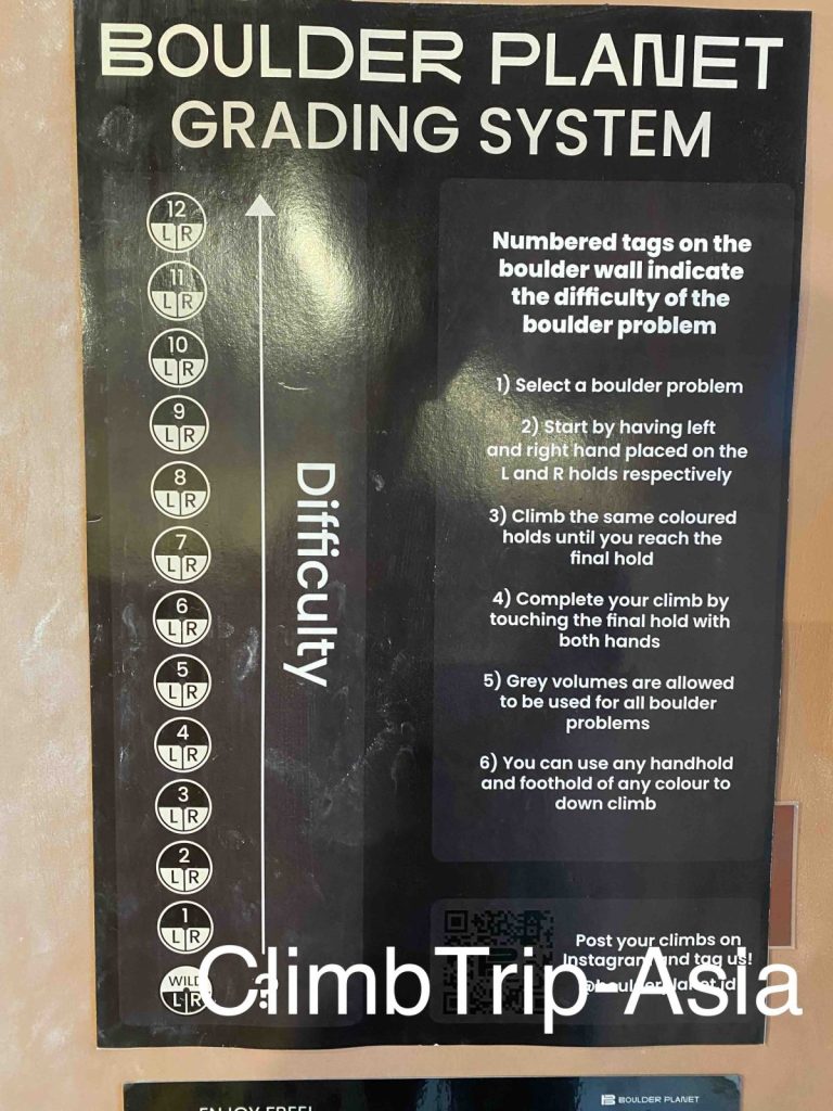 ジャカルタのクライミングジム「Boulder Planet」は、ボルダリングについて12段階の独自グレードを採用しています。